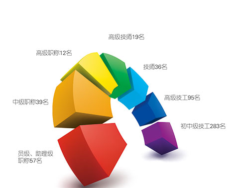 公司拥有500多名专业技术人员和职业技术员工。其中,中、高级专业技术职称51名,初级以上专业技术人员57名;技师、高级技师、初中高级技工433名。